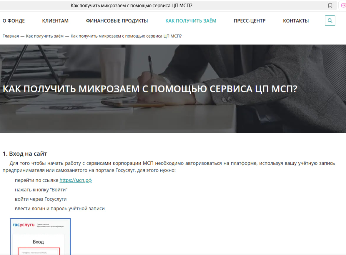 - Шаг первый— Авторизуйтесь на мсп.рф через Госуслуги
