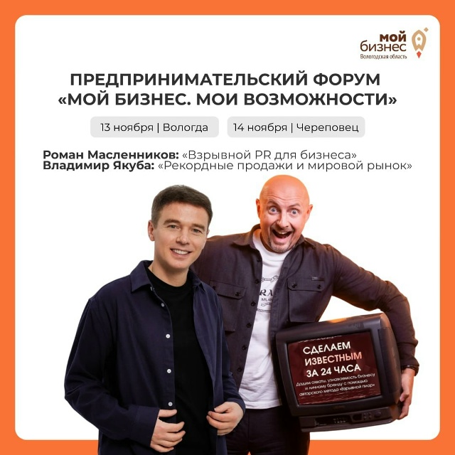 📆13 ноября в Вологде и 14 ноября в Череповце пройдет масштабное мероприятие для предпринимателей Вологодской...